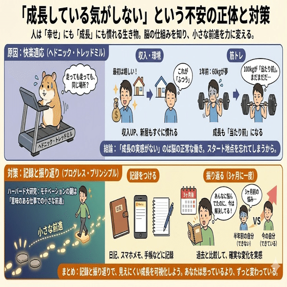 成長を感じられないのは、あなたが成長していないからじゃない。人間の脳が、変化に慣れてしまうようにできているから。